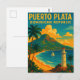 Check out this amazing and colourful Puerto plata vintage travel postcard featuring a retro travel watercolor artwork of the travel destination in the Dominican Republic with its iconic beach scenery. Makes a stunning travel souvenir and gift idea for every tourist and their vacation in the Caribbean Sea. Purchase this product now.