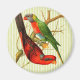 Colourful Vintage Red & Green Parrots Illustration Magnet
