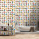 Colourful vintage toys pattern nursery wallpaper