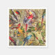 vintage illustration of colourful exotic birds: parrots, macaws, cockatoos on tropical trees