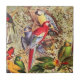 vintage illustration of colourful exotic birds: parrots, aras, macaws, cockatoos on tropical trees