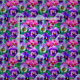 Colourful watercolor violets pansy flowers pattern on a dark turquoise background.