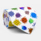 a decorative pattern design featuring lots of colourful stylised viruses on a neck tie.
