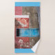 Colourful wall with blue door bath towel set