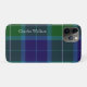 Stylish iPhone case mate phone case done in a traditional blue and green Scottish tartan plaid of the Wallace clan.  White text running vertical, on the left side, is ready to personalise.  Stylish and great way to protect your smart phone, and makes a great gift idea.