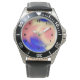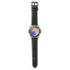 My husband loves the watch, he likes the dial, the graphics, the band, and it keeps perfect time.