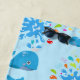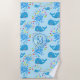 Colourful Water Splash Blue Whale Monogram Pattern Beach Towel