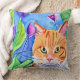 Colourful Watercolor Art | Orange Cat and Flowers Cushion