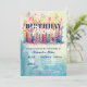 This customisable birthday party invitation is a visual delight, adorned with a vibrant and colourful array of watercolor candles that seem to dance joyously at the top, illuminating the celebratory atmosphere. The soft blue, teal and yellow pastel watercolors in the background add an elegant touch to the overall design, making it as pleasing to look at as it is to read. The words “BIRTHDAY Party” are boldly inscribed in an elegant yet playful font, inviting guests to partake in a memorable celebration. Every detail, from the date and time to the location, is meticulously laid out, ensuring that this invitation is not just informative but also a beautiful keepsake.