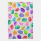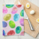 This pretty and colourful watercolor eggs dishtowel is a nice Easter kitchen accessory. The bright colours are cheerful and will add a whimsical touch to your kitchen Easter decor. Features hand painted eggs in a bright rainbow pattern on a pink background.