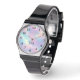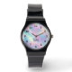 Elevate Your Style with this Colourful Watercolor Faux Holographic Opal Stone Watch! Featuring a mesmerising opal-inspired watercolor texture at its centre, this watch is both functional and fashionable. Black typography numbers encircle the design, while your initials or monogram can be personalised in elegant black script beneath the watch hands. A perfect keepsake gift for friends, family, coworkers, or even yourself!
