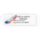 Colourful watercolor feather art custom address label.