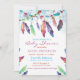 This invitation is a colourful watercolor feather baby shower invitation.