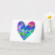 A colourful watercolor Valentine's Day card, displaying a heart with the word LOVE inside. The script is elegant and simple. The heart has subtle abstract leaf shapes within, giving it a serene nature effect. The inspiration for this art came from a young maple tree in my yard. The greeting inside the card reads: I'm so glad you are my Valentine. The template inside the card holds the recipient's name and your name. Be sure to add the date to the back of the card.