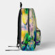Creative multi-colour watercolor painting backpack personalised with a monogram, name or initials in your choice of font styles, size, colour or placement or delete the sample text to leave the area blank in EDIT. ASSISTANCE: For help with design modification or personalisation or if you would like coordinating items, contact the designer BEFORE ORDERING via the Zazzle Chat MESSAGE tab below or email makeitaboutyoustore@gmail.com.