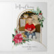 Colourful Watercolor Poinsettias, Pine & Arch Phot Tri-Fold Card