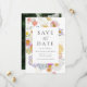Announce your wedding date with this romantic floral wedding save the date card, designed with a hand-painted border of flowers in shades of pink, blush, blue, yellow, and warm orange, softly accented with natural greenery for a fresh garden-inspired aesthetic. The botanical frame creates a refined yet inviting presentation, while your names and wedding date are displayed at the centre in an elegant pairing of classic serif typography and delicate script. The back features your full-bleed vertical engagement photo, allowing your image to make a bold, modern statement that beautifully contrasts the soft florals on the front. Ideal for spring and summer weddings, garden ceremonies, estate venues, and couples looking for colourful floral wedding stationery with a timeless yet personal touch, this save the date blends romantic watercolor blooms with a striking photo element for an elevated first impression.