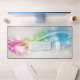 LOVE this desk mat! It's large! It fits across my desk. No need for a small mouse pad now! Color and print are excellent. Quality seems to be excellent too. Delivery was about 3 days sooner than expected. I think this is one of my favorite Zazzle products! Excellent. The color is vibrant and true to what I expected.