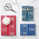 Set of wrapping paper sheets to welcome a new baby, with the colourful phrase "Welcome Little One", the three sheets share the same design in a black and white filter and different solid colours: red, turquoise and blue, however these can be customised to the person's taste. It is a simple design, but modern and fun.