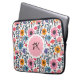 Colourful Whimsical Folk Art Floral Monogrammed Laptop Sleeve