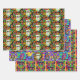 Pretty colourful folk art whimsical owl art birthday wrap.