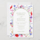 Beautiful watercolor floral elegant Simple Green arch wedding invitation with colourful wildflowers and ideal for spring or summer wedding. A whimsical yet stylish design with modern typography script with easy to personalise templates in Green. Wildflower paintings include vibrant red poppies, cornflowers, cosmos flowers, forget me nots and billy buttons in purple, pink, peach, sage green, teal, orange and blue. Original botanical artwork by artist Catherine Sweetman