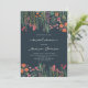 Modern boho bright wild flowers bohemian bridal shower. Featuring pink, peach, and sage green hues botanical flowers inspired by wildflowers and watercolor rustic gardens with subtle greenery and modern boho script typography on dark blue background.