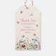This is a colourful and pretty thank you gift tag for a bridal shower. The design features elegant and summery delicate wildflower florals in pretty shades of blue, terracotta, pink, rust, purple and yellow. The butterflies and bees add the finishing whimsical touch.
