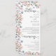 Add a touch of natural elegance to your wedding ceremony with the Wildflower Rustic Floral Wedding Program. This stunning design features a soft watercolor palette of wildflowers, butterflies, and delicate greenery, set against a rustic backdrop. The flowing black script lettering beautifully complements the vibrant flowers, making it an ideal addition to any rustic, boho, or wildflower-themed wedding. Perfect for guiding your guests through your ceremony, this program embodies the charm and serenity of a garden wedding and adds a touch of nature to your special day.