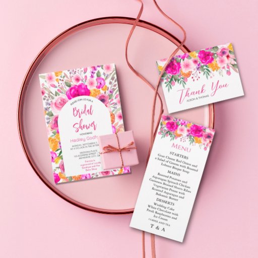 This Menu Graduation features an arrangement of watercolor flowers in shades of pink and white in rustic garden greenery. edit and personalise with your details. Available also as a downloadable.