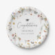 Colourful Wildflowers Graduate Paper Plates. Serve up a celebration in style with these gorgeous paper plates featuring a vibrant floral design of hand‐painted boho wildflowers in dark blue, bright pink, blush pink, golden yellow, vibrant red, and sage green. Ideal for transforming every meal into a festive moment, you can personalise the message, colours, and backgrounds to add a unique touch to your table—make every bite a work of art!