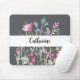 Colourful Wildflowers with Custom Name Grey Mouse Mouse Mat