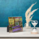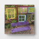 A very fun spot to sit in the garden! Colourful windows with a bold purple bench. Very cute garden decor.