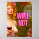 Colourful Wine Mum Quote Wine Not Retro Styled Poster features a Mum with a nose ring drinking her wine, WINE NOT are in pink letters.