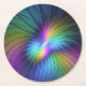 Colourful With Blue Modern Abstract Fractal Art Round Paper Coaster