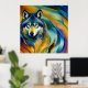 Colourful Wolf in Waves of bold Rainbow colours, Purples, blue and golds