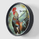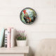 The size of the clock is dramatic and the abstract alcohol ink design is soothing and intricate at the same time. I chose the black frame that adds pop to the blue and gold design. The gold printing would be better in a slightly darker or larger font. I love it and I’m looking for just the right place in ny new apartment. I would recommend this clock for a personal gift or a present. I feel that the quality is excellent for the money! I’m a bit of a clock nut so I’m pretty particular about my purchases. The clock is larger in diameter than many if the clocks I have, so it stands out very well. I think a slightly darker printing color and a moderately larger size would best suit a professional decor or add more impact in a work place item.
