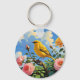 Colourful yellow bird and pretty pink roses key ring