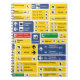 Collection of yellow and blue airport signs and information boards. High contrast signs to ensure good readability and legibility of the signage.