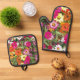 Colourful Zinnia Garden Floral Oven Mitt & Pot Holder Set