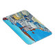 Vibrant, stylised painting of beautiful Santorini, Greece with its majestic blue dome by popular artist Lisa Lorenz on a magnet.