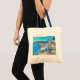 Vibrant, stylised painting of beautiful Santorini, Greece with its majestic blue dome by popular artist Lisa Lorenz on a stylish Tote Bag