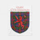 Colquhoun Scottish tartan plaid pattern design for the Colquhoun Clan Family underneath the red Lion Rampant Shield of Scotland.