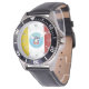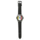 My husband loves the watch, he likes the dial, the graphics, the band, and it keeps perfect time.