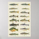 Vintage artwork of various fish in two columns