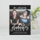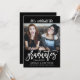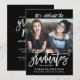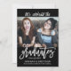A trendy graduation party invitation/announcement in for BFF's, siblings, cousins, family members, neighbourhood graduates or other multi-grad occasions, this invitation has the names of the graduates, class year, and school on the front of the invitation along with a sample photo that you replace with your desired photo. The back of the invitation has a text template for your graduation party celebration details. The colour scheme is black with white text.