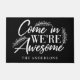 Come In We're Awesome Black Funny Family Doormat. This rustic door mat features a modern script with rustic laurel olive branch accents. Personalise this funny custom design with your own family name. Makes the perfect housewarming gift.