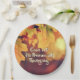 Beautiful Thanksgiving inspirational quote paper plate depicts a lovely display of fall leaves and features Bible Verse Psalm 95:2, "Let us come into His Presence with Thanksgiving."