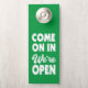 Come on in, we're open greeting sign for your business, store, or office door. Friendly and professional typography to welcome your customers or associates.