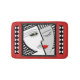 Striking, Art Deco inspired portrait of the two-faced Janus, Roman god of Beginnings & Endings, War & Peace, and other significant transitions.This black & white & light grey optical illusion is presented on a sensuous red background w/ insets of a column of diamonds on white ribbon on each side. Per Feng Shui principles, the yin/yang of Janus brings a pleasing balance to your room.